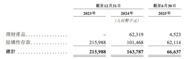 招股书显示,公司在2023年末持有理财产品及其他金融资产约2.2亿元人民币,但到2025年6月底,这一数字已锐减至0.67亿元,降幅超过69%。